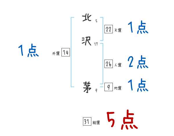 外運![]() | 北沢茅さんの外運は14画の1つ星!人に対して優しいがストレスを溜め込みがち。人間関係のトラブルを避けるよう気をつけましょう。 生活面を象徴する運勢です。外部から受ける影響力を表し、結婚運、家庭運や職場、環境への順応性を表します。 |