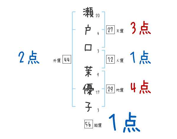 瀬戸口茉優子さんの画数の鑑定結果