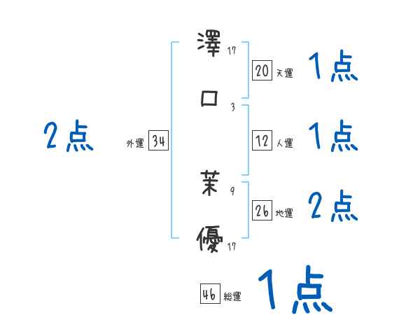 澤口茉優さんの画数の鑑定結果