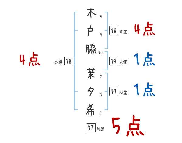 木戸脇茉夕希さんの外運は18画の4つ星