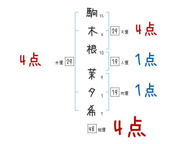 家系が持つ宿命的な運勢を表します。祖先から受け継いだ苗字ですので自分の力が及びません。家柄を象徴します。