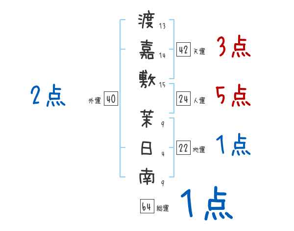 渡嘉敷茉日南さんの画数の鑑定結果