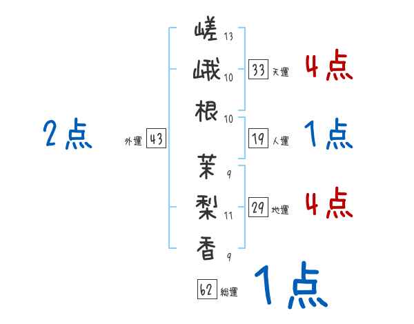 嵯峨根茉梨香さんの画数の鑑定結果