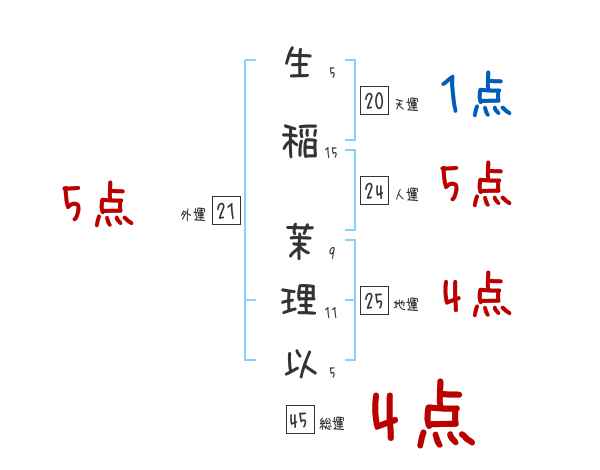 人運![]() | 生稲茉理以さんの人運は24画の5つ星!家庭運が良く順調な人生。金運にも恵まれる。 性格や才能などを表す2番目に重要な運勢です。人間関係や協調性、社会的な成功に影響します。主に20歳から50歳ぐらいまでの中年期の運勢を表します。 |