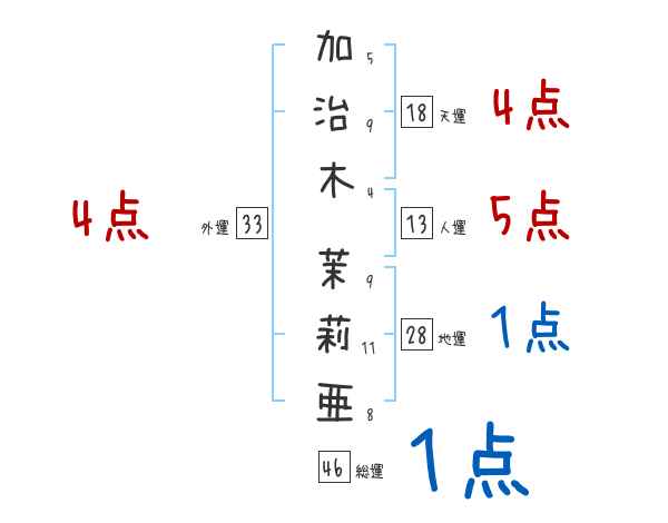 加治木茉莉亜さんの画数の鑑定結果