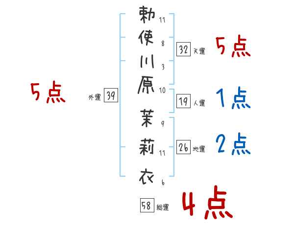 勅使川原茉莉衣さんの画数の鑑定結果