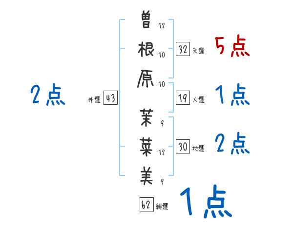曽根原茉菜美さんの画数の鑑定結果