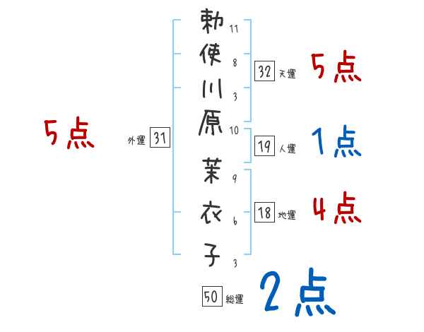 勅使川原茉衣子さんの画数の鑑定結果