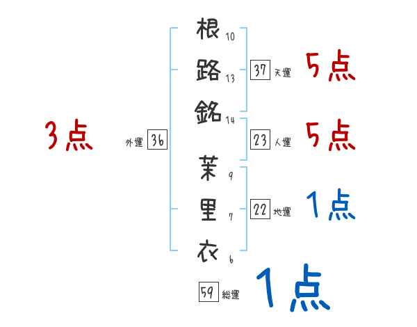 根路銘茉里衣さんの画数の鑑定結果