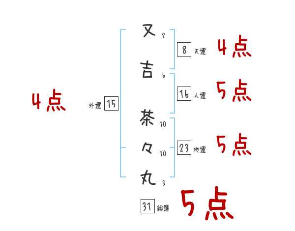 又吉茶々丸さんの画数の鑑定結果