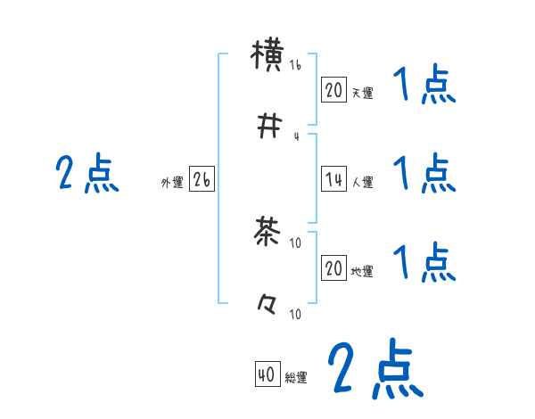 総運![]() | 横井茶々さんの総運は40画の2つ星!自信過剰で物事に固執するためトラブルに注意。 あなたの人生を表す1番重要な運勢です。生涯を通じて影響する総合運となり、主に50歳以降の晩年期に影響を及ぼします。 |