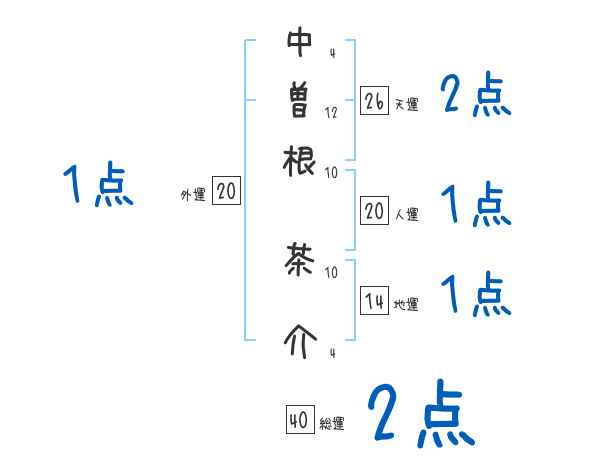 中曽根茶介さんの画数の鑑定結果