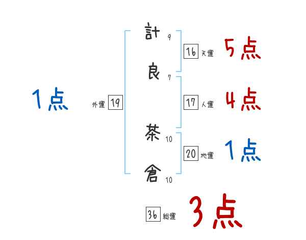 計良茶倉さんの画数の鑑定結果