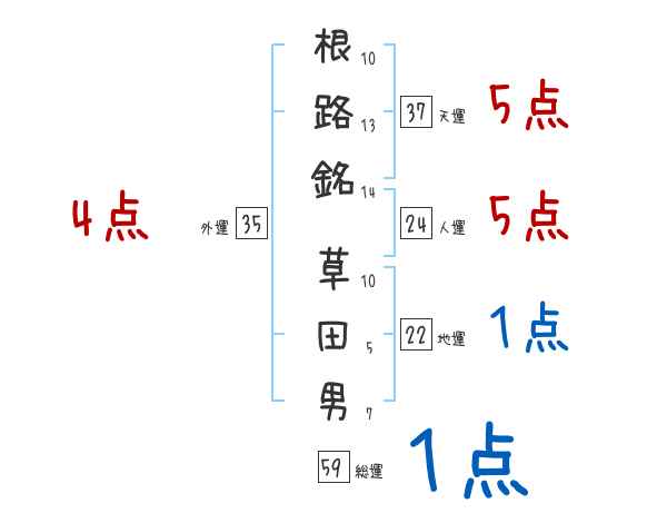 根路銘草田男さんの画数の鑑定結果