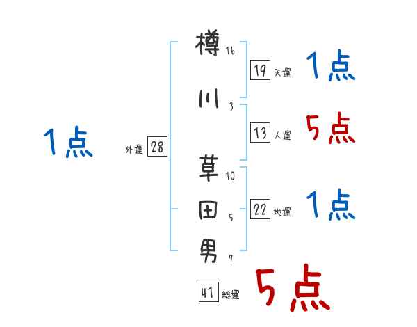 総運![]() | 樽川草田男さんの総運は41画の5つ星!大志を抱き、目標に向かって実力を発揮し達成する。温和な性格。 あなたの人生を表す1番重要な運勢です。生涯を通じて影響する総合運となり、主に50歳以降の晩年期に影響を及ぼします。 |