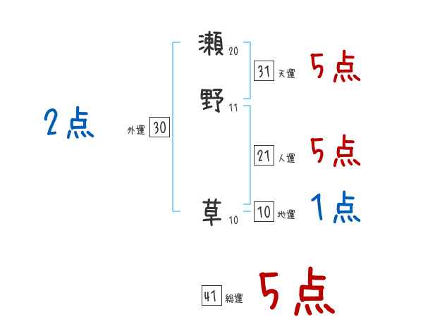 瀬野草さんの画数の鑑定結果