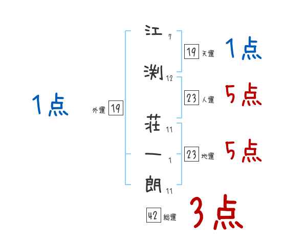 外運![]() | 江渕荘一朗さんの外運は19画の1つ星!優れた才能を持ちますが、協調性が足りないことも。周りの人と協力する事を意識しましょう。 生活面を象徴する運勢です。外部から受ける影響力を表し、結婚運、家庭運や職場、環境への順応性を表します。 |