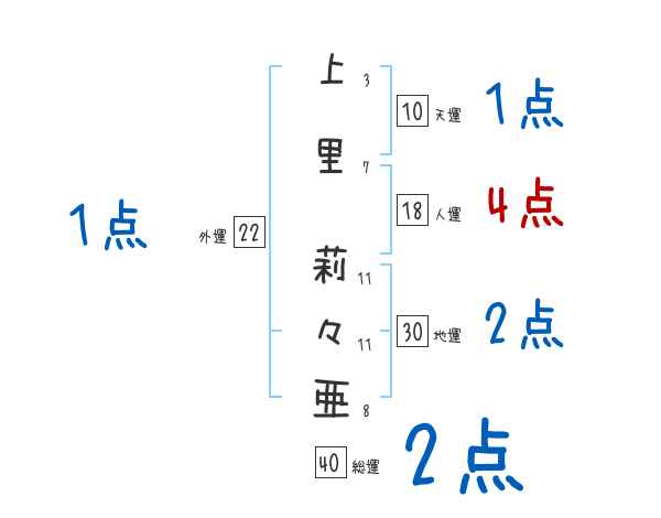 上里莉々亜さんの画数の鑑定結果