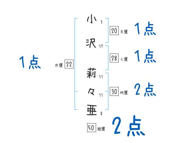 小沢莉々亜さんの画数の鑑定結果