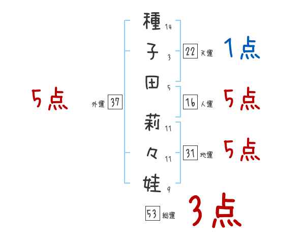 種子田莉々娃さんの画数の鑑定結果