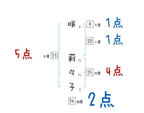 咲莉々子さんの画数の鑑定結果
