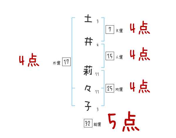 土井莉々子さんの画数の鑑定結果