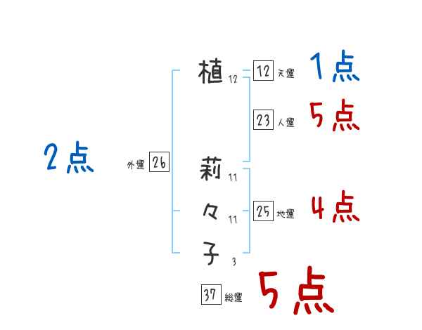 植莉々子さんの画数の鑑定結果