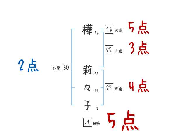 天運![]() | 樺莉々子さんの天運は16画の5つ星!人望が厚く大きく発展する。逆転成功が見える。 家系が持つ宿命的な運勢を表します。祖先から受け継いだ苗字ですので自分の力が及びません。家柄を象徴します。 |