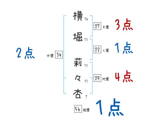 天運![]() | 横堀莉々杏さんの天運は27画の3つ星!頭脳明晰だが強情で摩擦が多い傾向。孤立に注意。 家系が持つ宿命的な運勢を表します。祖先から受け継いだ苗字ですので自分の力が及びません。家柄を象徴します。 |