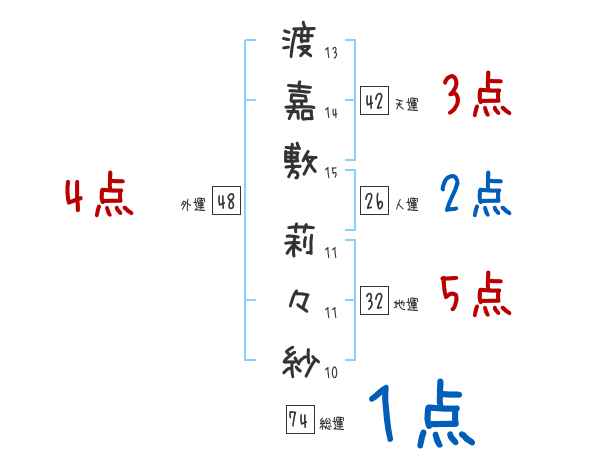 渡嘉敷莉々紗さんの画数の鑑定結果