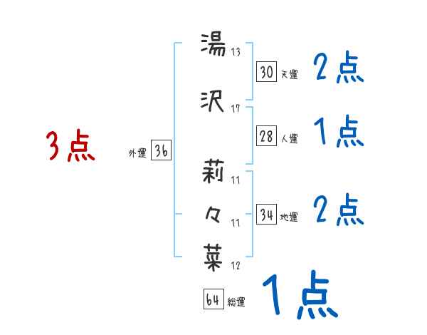 湯沢莉々菜さんの画数の鑑定結果