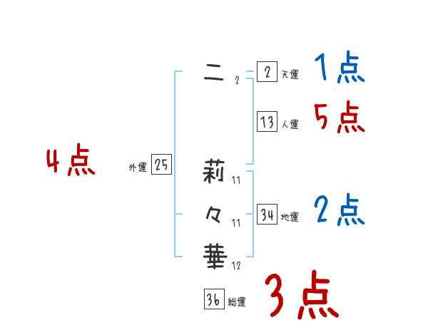 二莉々華さんの画数の鑑定結果