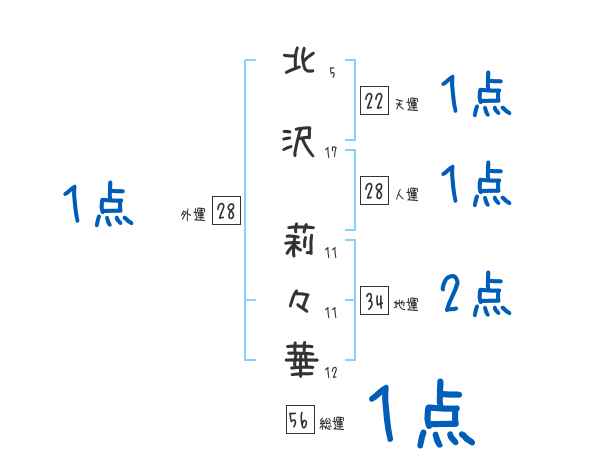 北沢莉々華さんの画数の鑑定結果