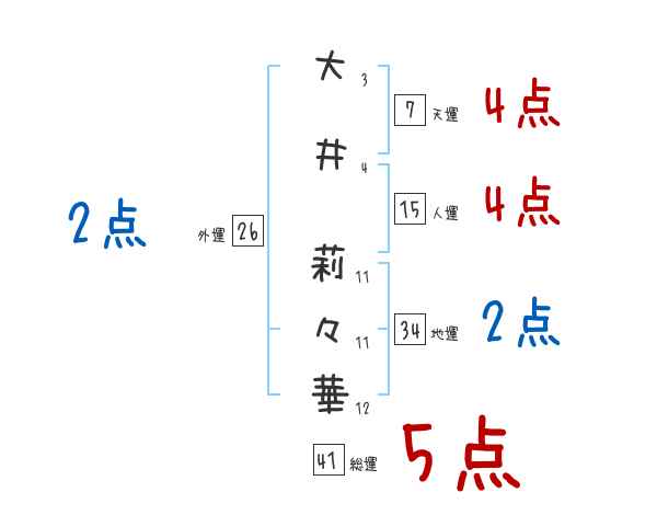 外運![]() | 大井莉々華さんの外運は26画の2つ星!波瀾万丈かも。信頼できる人を大事にしましょう。 生活面を象徴する運勢です。外部から受ける影響力を表し、結婚運、家庭運や職場、環境への順応性を表します。 |