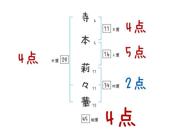 寺本莉々華さんの画数の鑑定結果