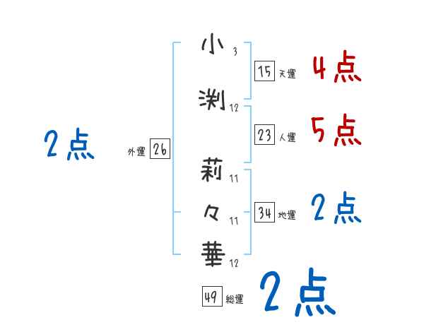 小渕莉々華さんの画数の鑑定結果
