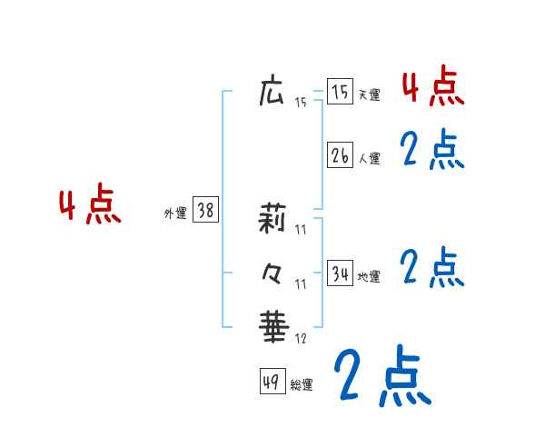 広莉々華さんの画数の鑑定結果