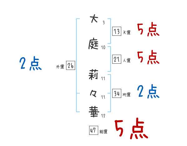 大庭莉々華さんの画数の鑑定結果