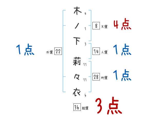 総運![]() | 木ノ下莉々衣さんの総運は36画の3つ星!先見性が豊かです。多少神経質で苦労することも。 あなたの人生を表す1番重要な運勢です。生涯を通じて影響する総合運となり、主に50歳以降の晩年期に影響を及ぼします。 |