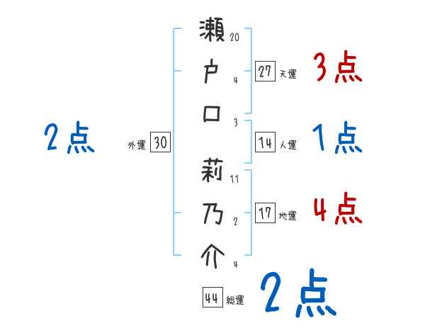 瀬戸口莉乃介さんの画数の鑑定結果
