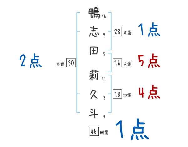 鴨志田莉久斗さんの画数の鑑定結果