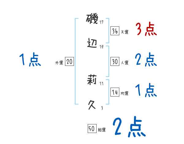磯辺莉久さんの画数の鑑定結果