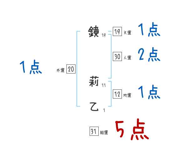 天運![]() | 鏡莉乙さんの天運は19画の1つ星!優れた才能を持ちますが、協調性が足りないことも。周りの人と協力する事を意識しましょう。 家系が持つ宿命的な運勢を表します。祖先から受け継いだ苗字ですので自分の力が及びません。家柄を象徴します。 |