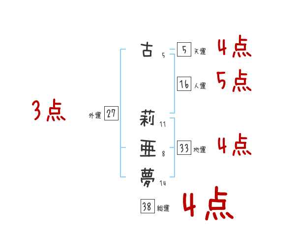 古莉亜夢さんの画数の鑑定結果