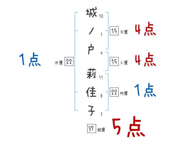 外運![]() | 城ノ戸莉佳子さんの外運は22画の1つ星!努力することが苦手ないっぽう手先が器用。芸術性にも優れる。 生活面を象徴する運勢です。外部から受ける影響力を表し、結婚運、家庭運や職場、環境への順応性を表します。 |