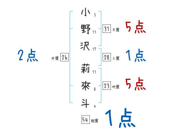 外運![]() | 小野沢莉來斗さんの外運は26画の2つ星!波瀾万丈かも。信頼できる人を大事にしましょう。 生活面を象徴する運勢です。外部から受ける影響力を表し、結婚運、家庭運や職場、環境への順応性を表します。 |