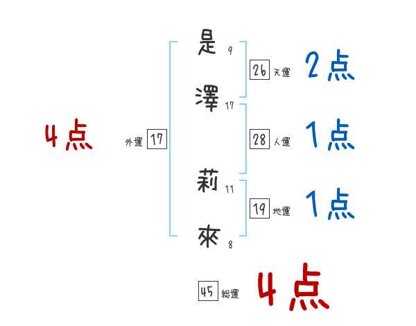 是澤莉來さんの画数の鑑定結果
