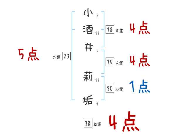 小酒井莉垢さんの画数の鑑定結果