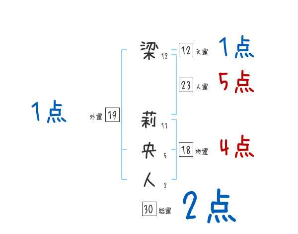 梁莉央人さんの画数の鑑定結果