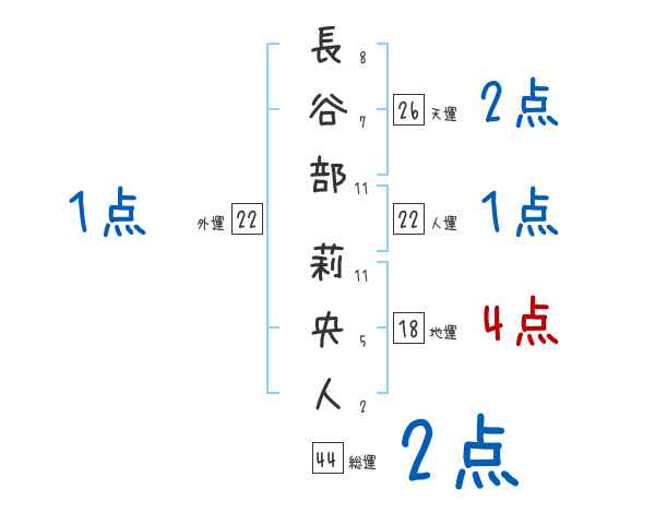 長谷部莉央人さんの画数の鑑定結果